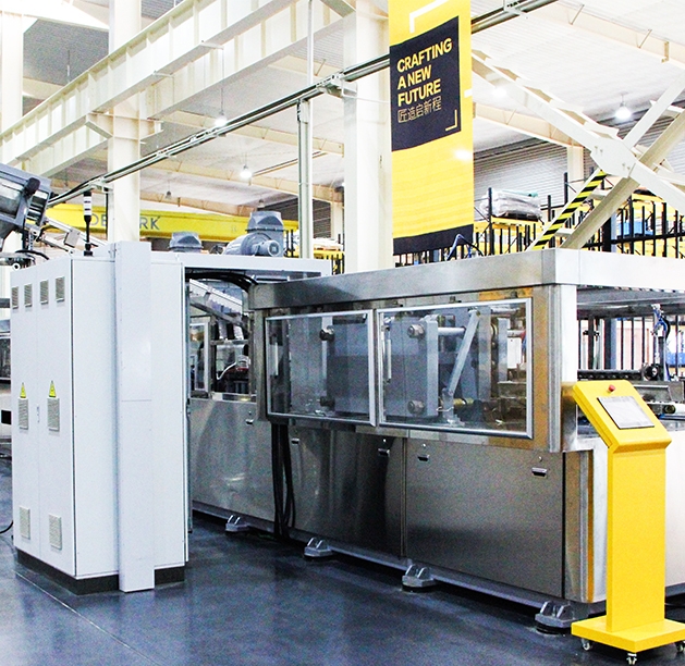 4. 在不增加吹瓶機(jī)體積的情況下,加熱系統(tǒng)采用立體式多層加熱燈管加熱方式,吹瓶機(jī)生產(chǎn)250ML圓瓶的產(chǎn)能可提高到13000瓶/小時(shí),并降低了單件能耗。